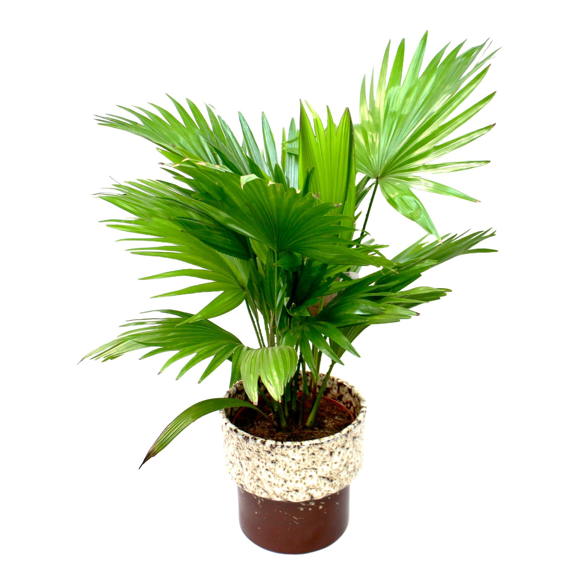 Livistona Rotundifolia is also known as a Footstool Palm. It's a beautiful palm with graphic fan shaped leaves and thorny stems. The Footstool Palm grows in a neat upright style and can reach up to 2 meters indoors.